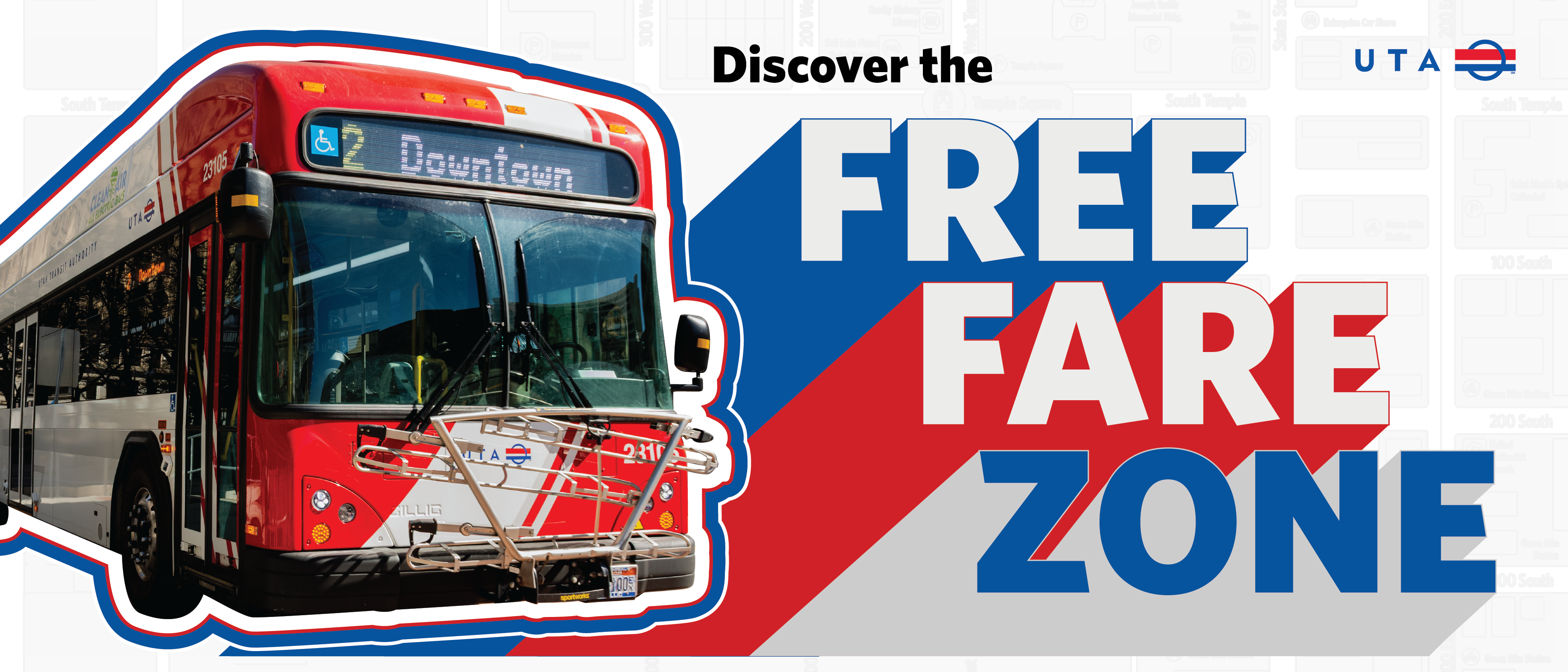 For 40 years, UTA has provided free rides in downtown Salt Lake City. You may ride for free on TRAX or fixed-route bus as long as you enter and exit within the boundaries of UTA’s Free Fare Zone, as shown in the map below.